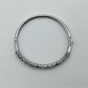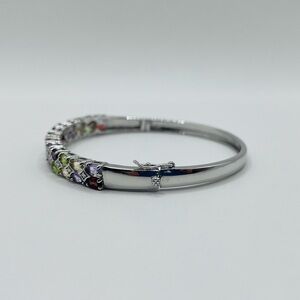 Genuine 5.00 ct Multi Gemstones Sterling Silver Cuff Bracelet