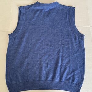 Elegant blue sweater vest by Turnbury. Made from extra fine merino wool. Small hole top right shoulder area. Picture included.