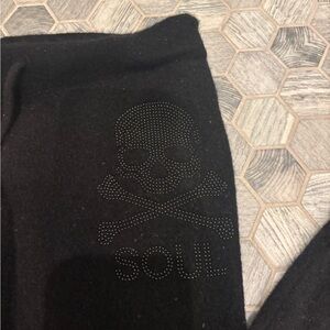 Cashmere black joggers featuring SoulCycle logo. Ideal for winter lounging.