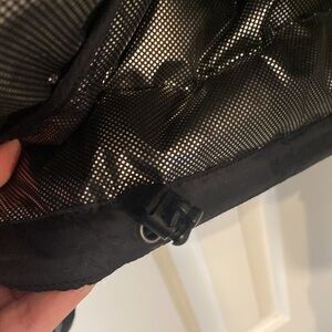 At bottom of the coat there is a hole where the feathers are coming out. Original owner patched up with some electrical tape. I’m sure it could be mended. Price reflected for flaw. Otherwise jacket has plenty if life left in it.