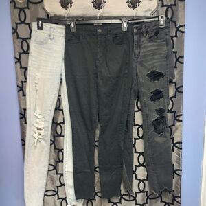Three Pairs Size 4 Stretch Hi Rise Jegging American Eagle Distressed Jeans!
