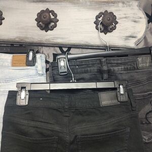 Three Pairs Of Size 4 American Eagle Distressed Jeans! Set of three distressed jeans in dark black, gray/black, and light blue. Perfect for casual wear.