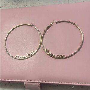 Chic Coach earrings with a sleek gold design. Features iconic logo detail. Ideal for elevating any look.