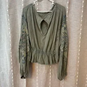 Free People Olive Embroidered Blouse