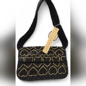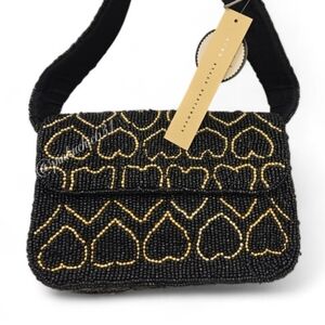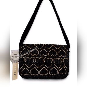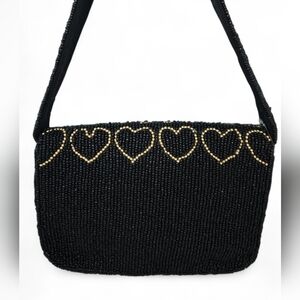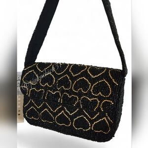 Evening handbag Purse Shoulder Bag Satchel Intricate Bead Beaded Hearts Heart Holiday Valentine's Day Gift Present Cocktail Dress Party