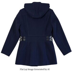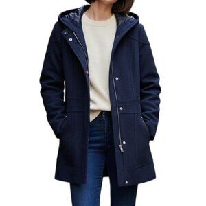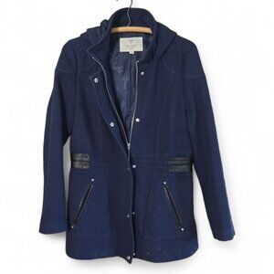 GUESS Los Angeles Women’s Wool Blend Hooded Pea Coat Navy Large