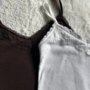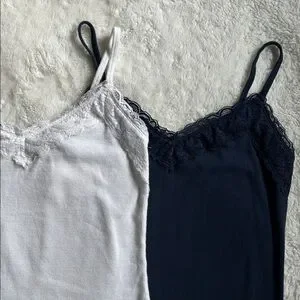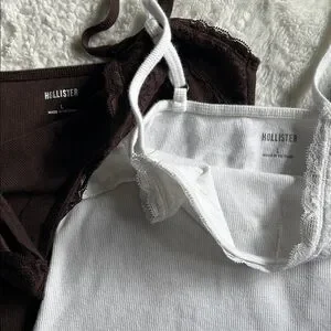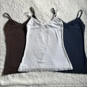 Set of 3 Hollister Lace Trim Camisoles - White, Brown, Navy