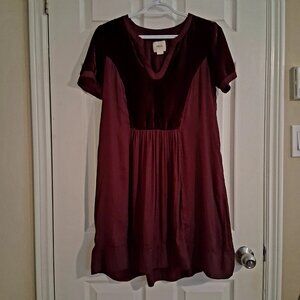 Anthropologie Maeve Women's Size Small Plum Burgundy Velvet Tunic Dress