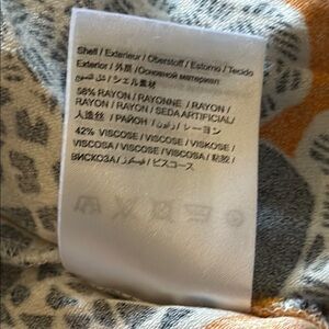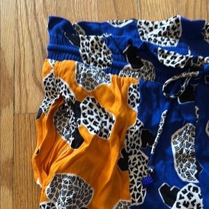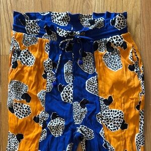These vibrant pants feature a playful blue and orange design by Farm Rio.