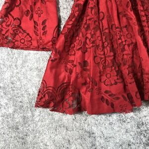 Color: Deep red with matching floral lace pattern.