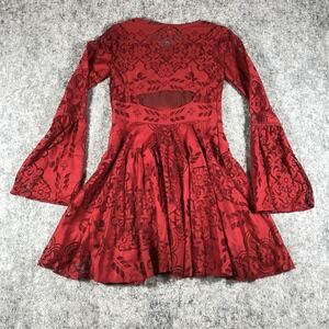 Free People Dress Womens 0 Red Lace Fit & Flare Bell Sleeve Boho Mini Dress