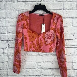 Zara Pink and Orange Floral Crop Top