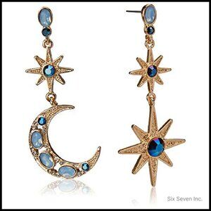 Brand new, never worn — these celestial drop earrings deliver a whimsical, elevated look perfect for evening events, parties, or adding celestial charm to any outfit. The mismatched design is detailed, eye-catching, and incredibly stylish.