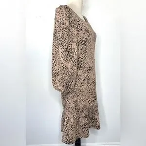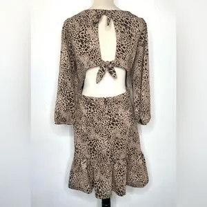 ANTHROPOLOGIE Maeve Cut Out Mini Animal Print Dress Brown Leopard Size 14