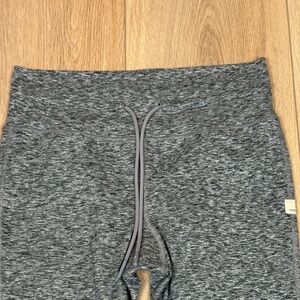 Vuori Daily Leggings in heathered black, women’s size medium. Super soft and comfortable with a high-rise waistband and adjustable drawstring. 7/8 length with cuffed ankles.