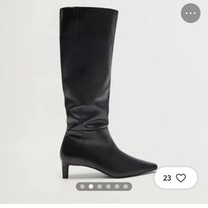 Mango Genuine Leather Boots with Kitten Heel and Square Toe