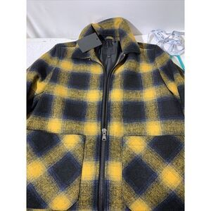 ASOS DESIGN Plus wool blend zip through jacket in yellow and blue check NEW XS