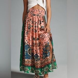 FARM Rio Vibrant Green and Pink Maxi Skirt