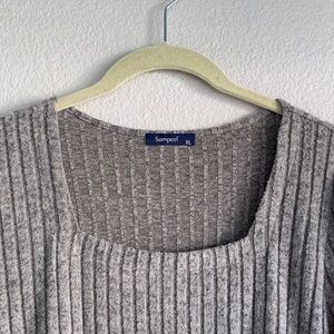 Super soft and flattering sweater dress! Flattering neckline and tiered skirt. Nice stretch material with pockets.