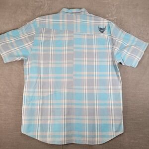 Quiksilver Y2K Mens Short Sleeve Plaid Button Up Shirt Blue Size Large