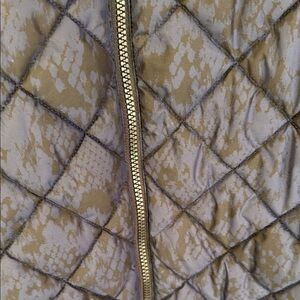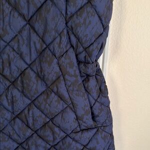 Athleta black & navy quilted puffy vest. Perfect for layering. size L. Zippered pockets. Can zip up or down. The back can be cinched. Protected zipper at the top. Great shape.