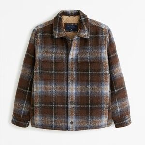 Stay cozy and stylish with this Abercrombie & Fitch sherpa-lined shirt jacket—the perfect layering piece for fall and winter. Designed with a classic button-front look and soft sherpa lining, it combines comfort, warmth, and effortless style.