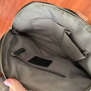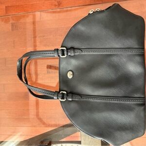 Coach Peyton Bag. Great used condition with wear on the straps - see photos. Made of high-quality Saffiano or refined leather with a black exterior. The bag has a sleek, modern dome shape with double top handles and a zip-top closure. The interior is lined with fabric and includes one zip pocket and two slip pockets. Shows signs of use. See photos. There is also an outside slip pocket on the back. No reasonable offer refused.