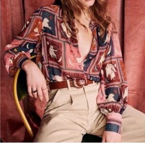 SEZANE TIANA ASTROLOGY ZODIAC BLOUSE RARE SZ XS