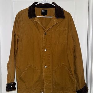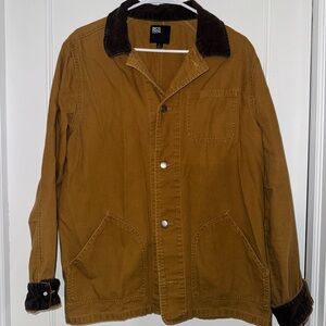 Trendy barn jacket with brown corduroy accents.