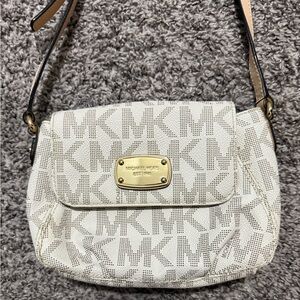 Stylish and versatile, this Michael Kors crossbody bag in white is perfect for any occasion. Featuring the iconic MK logo, it combines elegance with functionality.