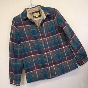 Rustic Ridge Shirt Jacket Womens L Plaid Faux Shearling Lined Cozy Cottagecore