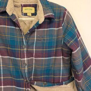 Rustic Ridge Sherpa Lined Flannel Shirt Womens L Blue Plaid Cozy Button Shacket