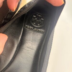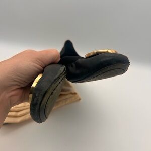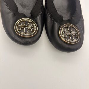 Tory Burch Caroline Black Leather Flats with Gold Emblem size 8 dustbag