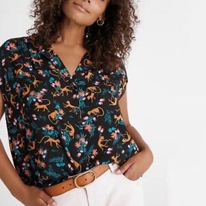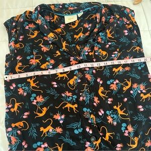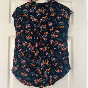 Anthropologie Maeve Monkey Print Blouse Black Safari Orange Pink Floral Top S