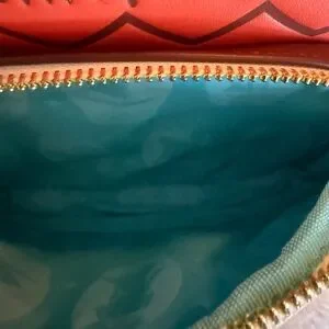 This mini backpack is designed like Moana's signature outfit, with a string of shells across the top and the Heart of Te Fiti on the front zipper pocket. Comes with side pockets and interior drop pocket.
