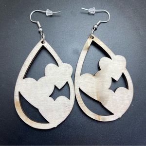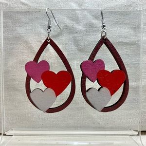 Valentine's Day Love Hearts Wooden Drop Dangle Earrings