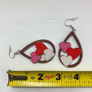 Valentine's Day Love Hearts Wooden Drop Dangle Earrings 1 Pair