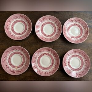 VTG Set of 6 Churchill Pink Willow Teacups with Saucers