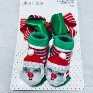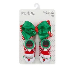 Okie Dokie Christmas Headband & rattle Socks Baby Girls 2-pc