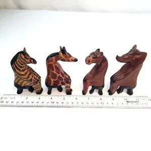 Hand Carved African Safari Animal Figure Lot Tribal Folk Art Elephant Zebra Wood