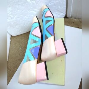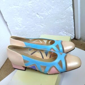 Elevate your shoe game with these stunning TNT Originals Roselle dress heels. The pastel multi-colored shoes feature a closed-toe design with a slip-on closure, making them perfect for any occasion, whether it's a party, business meeting, or casual outing. The shoes have a block heel style with a height of 1 3/4 to 2 3/4 inches, providing comfort and elegance.