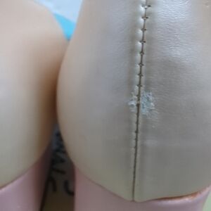 Some rubbing only a bit seen on heels and side of shoe, from rubbing feet together with shoes on, can see in pictures, a little shoe polish would cover it right up. 📌
