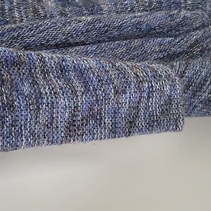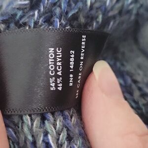 Chic navy cardigan with a draped front. No pockets. 54% Cotton, 46% Acrylic.