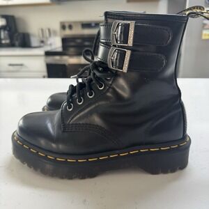 Dr. Martens 1460 Double Buckle Smooth Black Leather Zip Side & Lace Up US 6