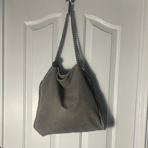Beautiful fun and classy gray bag with silver-toned chain trim. Perfect for versatile styling.