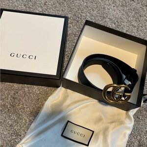 Authentic. Sophisticated Gucci belt for women. Black leather with iconic gold buckle. Perfect for any outfit. Size 105. Gently used. Smoke free home. Still on website for $590.