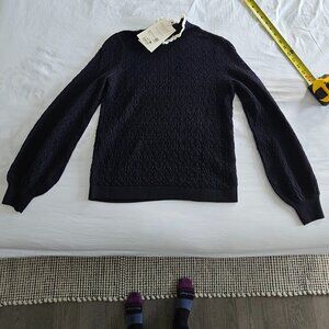 Sezane Arielle Jumper, Navy/Ecru Crochet size xxs NWT