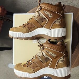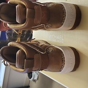 Step out in style with these Michael Kors Leather booties with gold accent. Perfect for any casual outing, these shoes offer both comfort and fashion. I only wore them a few times. Like new!
