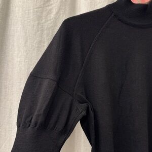 ALAÏA Women's 100% New Wool Puff Sleeve Mock Neck Black Long Sleeve Bodysuit XS