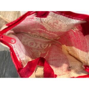 Royal Brown Basmati Rice tote bag crafted from durable jute material. This reusable bag showcases the iconic branding of Royal Brown Basmati Rice, featuring 'From the Foothills of the Himalayas' and 'Naturally Aromatic Premium Aged' text. A zipper closure secures the contents, and sturdy red fabric handles provide comfortable carrying. The bag is designed to hold a 20 lb product of India.